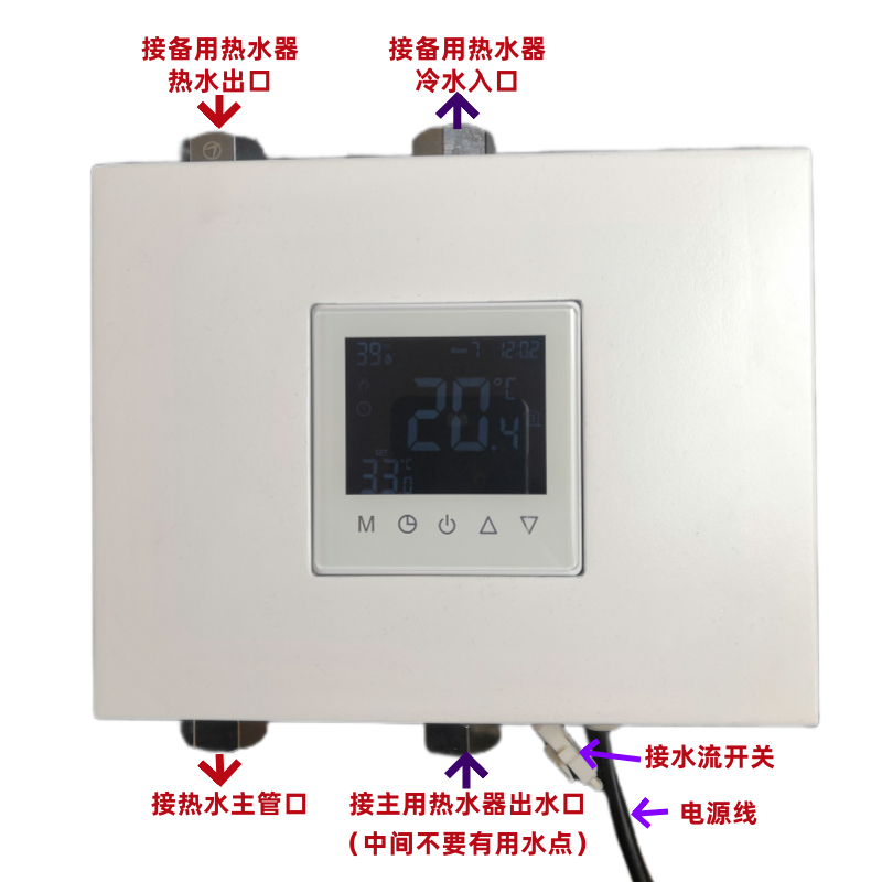 2.主热水器水温不足:自动导流至燃气热水器二次加热